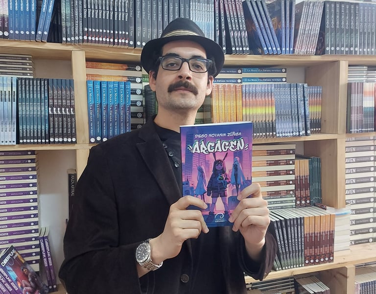 Diego “Novanim” Zúñiga (b. 1987, Quilpué, Chile) is an award-winning comic author, illustrator, and art director. Trained as a Biomedical Engineer at the University of Valparaíso, he shifted careers to pursue his passion for drawing, making his debut with the webcomic-turned-book Cabralesa: ¿Conoces alguna? (2011). Since then, he has participated in several international comic projects, notably contributing cover artwork for Transformers with IDW Publishing.